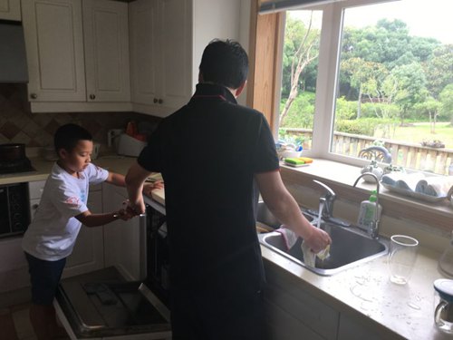 凤凰娱乐讯日前,歌手孙悦在微博上晒出了六岁儿子做家务的照片,并附文:“今天阿姨不在家,我和儿子负责做早餐,老公和儿子负责洗碗,每个环节儿子都亲自参与!儿子真的很棒,暖男一枚,一个幸福的早餐”。