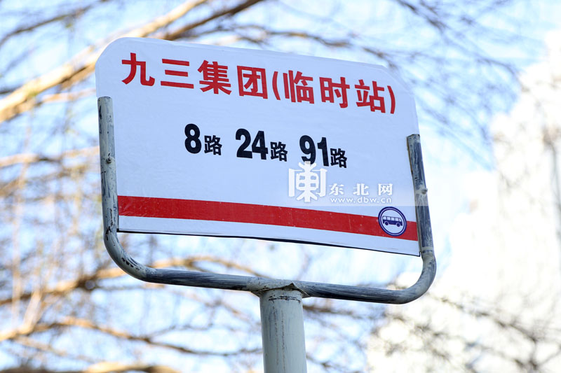 临时站牌。东北网记者白林鹤摄