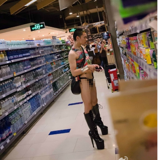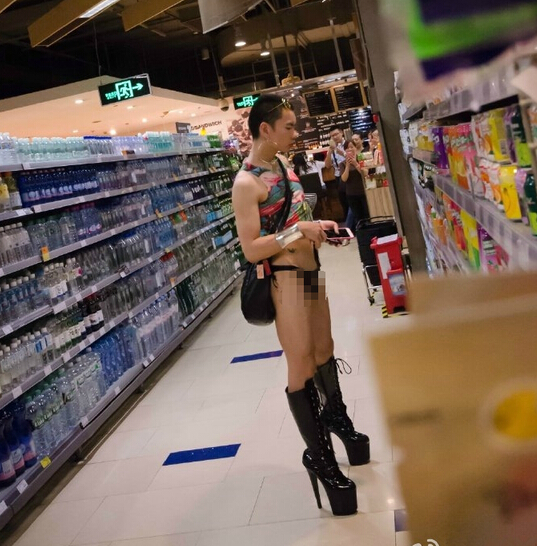 原标题:深圳超市现异装男深圳超市现异装男内裤背心加高跟靴好另类