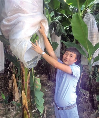刚走进香蕉园,一位身穿天蓝色短袖衬衫、浅灰色西裤、棕色休闲皮鞋的年轻人便迎了上来。如果不是一旁的工作人员介绍,记者很难想象,这位85后男生,就是这片香蕉园的主人、云南西双版纳东廷农业发展有限公司总经理姜东海。