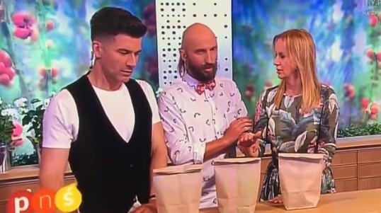 波兰3日电视节目《早餐的问题》请来入围该国才艺大赛的魔术师示范消失的大钉魔术。