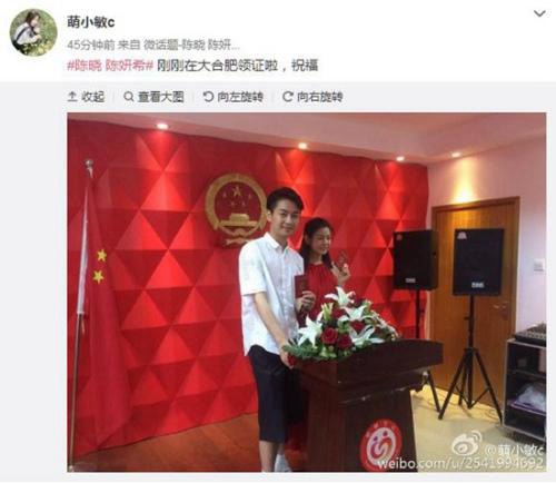 中新网北京7月5日电(记者李萌)今日,有网友在微博晒出陈晓和陈妍希领证结婚的照片,引发热议。男方宣传人员向中新网记者证实此事,稍后,于正也在微博送上祝福。