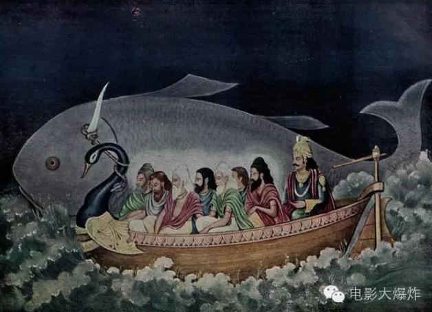 摩奴帮助了一条小鱼,照样它长大,在“诺亚方舟”式那种灭世大洪水的时候,长大后的鱼让摩奴把绳子套在它的角上,将大船上拉到了高高的雪山下,拯救了世界,那条大鱼就是毗湿奴的化身。结果,鲲的角就没有任何用途,这就像是浪费故事的人设。