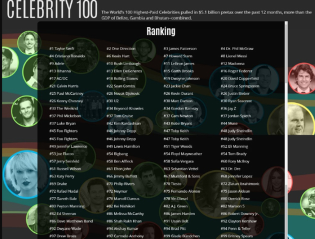 福布斯2016收入最高百强艺人名单遭扒 霉霉居榜首成龙上榜