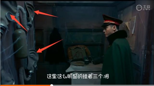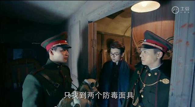 副官找来2个防毒面具,说着好不容易找到2个,我们再把镜头转回到张启山进车的时候,墙上明显有三个好咩?摄影大哥深深的出卖了他啊!
