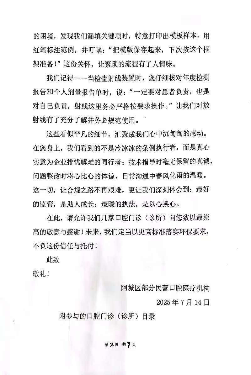 真情服务解难题 阿城区13家民营口腔机构联名致谢生态环境局
