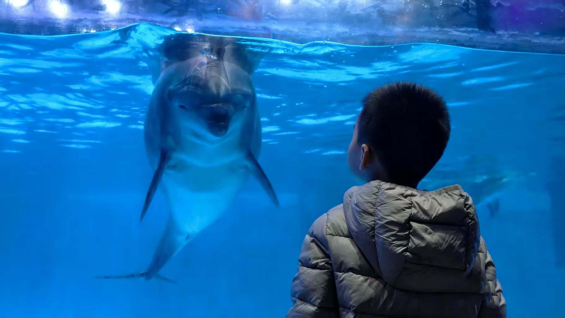 海豚表演结束后,梦幻的“海豚音乐会”暖心上演。在专业驯养员的悉心指引下,海豚凭借独有的高频率超声波,为孩子们献上专属乐章。据悉,海豚发出的高频超声波能有效激活大脑中枢神经,对提升孤独症儿童的交流意愿与语言能力具有积极辅助治疗作用。温柔的“海洋之声”萦绕现场,原本拘谨的孩子们逐渐放松,纯真的笑容在脸庞悄然绽放。